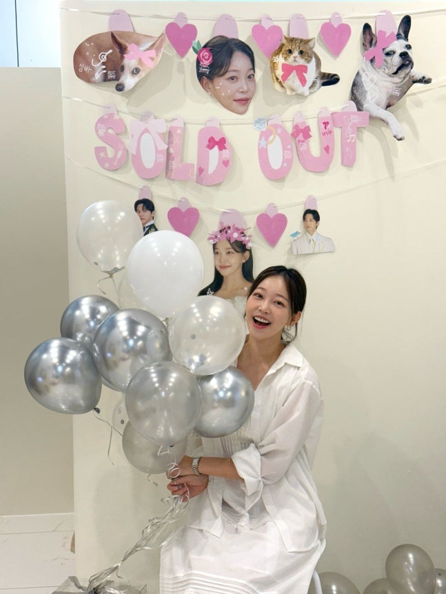 공개된 사진 속에는 김가은이 ‘SOLD OUT’이라고 적힌 글씨 앞에서 포즈를 취하는 모습이 담겼다. 친구들이 준비한 브라이덜 샤워 파티에서 품절녀 등극을 기념하고 있는 김가은이다. 행복한 미소와 아름다운 미모가 눈길을 모은다.