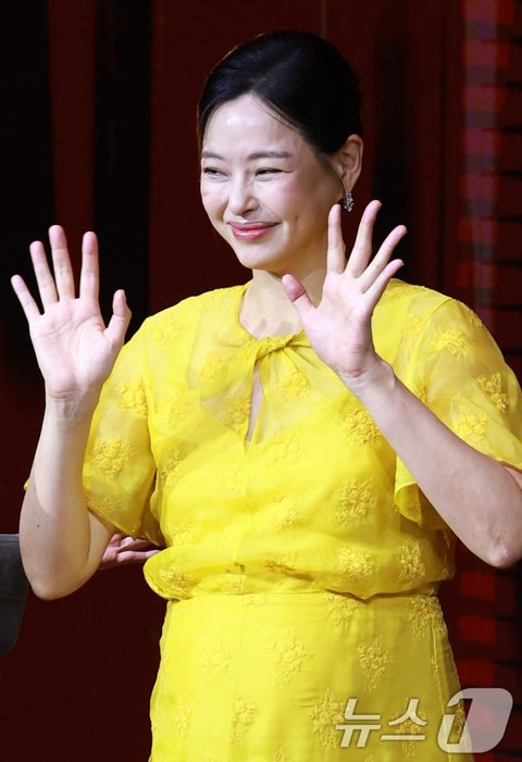 배우 이하늬가 18일 오전 서울 중구 호텔나루서울엠갤러리에서 열린 넷플릭스 시리즈 '애마' 제작발표회에 참석해 인사를 하고 있다. '애마'는 1980년대 한국을 강타한 에로영화의 탄생 과정 속, 화려한 스포트라이트에 가려진 어두운 현실에 용감하게 맞짱 뜨는 톱스타 '희란'(이하늬 분)과 신인 배우 '주애'(방효린 분)의 이야기를 그린 작품이다. 2025.8.18/뉴스1 ⓒ News1 권현진 기자