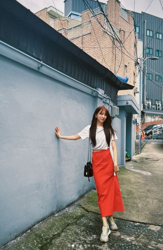 공개된 사진에는 윤은혜의 일상이 담겨 있었다. 윤은혜는 일상의 패션을 소개하기 위해 골목에서 포즈를 취하면서 다양한 각도로 사진을 찍고 있었다. 진한 오렌지색의 롱스커트와 흰색 상의, 운동화를 매치해서 캐주얼하면서도 센스 있는 패션을 뽐냈다.