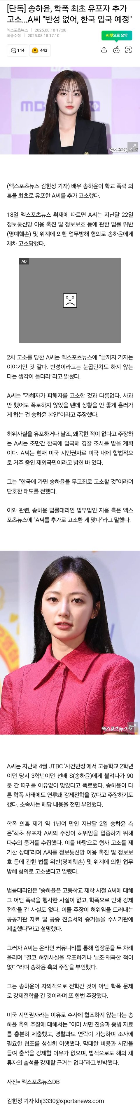 송하윤 학폭 피해 유포자 고소 한다고 함..