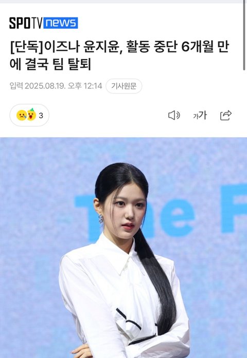 이즈나 윤지윤 탈퇴 실화야??