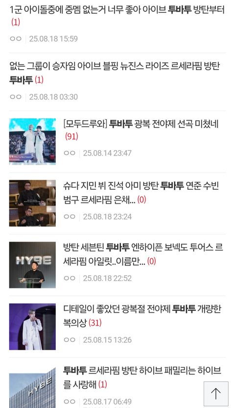 결국 또 방탄 투바투로 글밀 도배하고 투바투 망염불 한거봐 이짓하려고 연준글 못올리게 개발작한거야