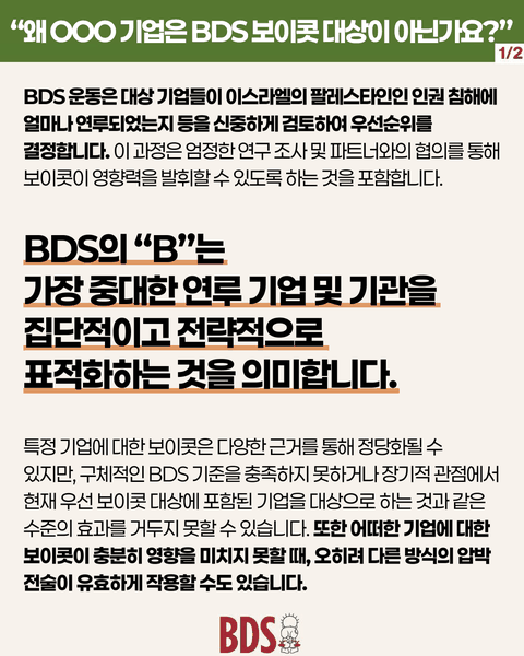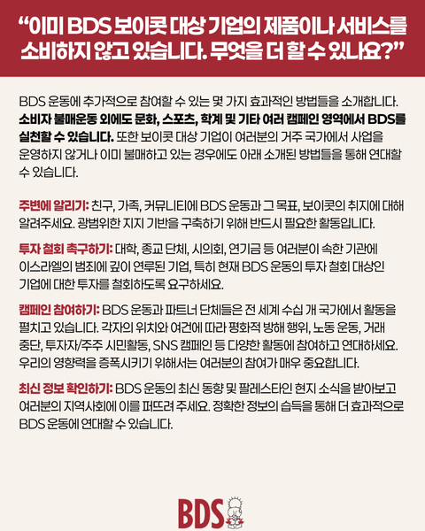 팔레스타인 사람들에게 우리가 해줄 수 있는 건 많아, 불매는 가장 쉽고 효과적인 연대 방식이야.