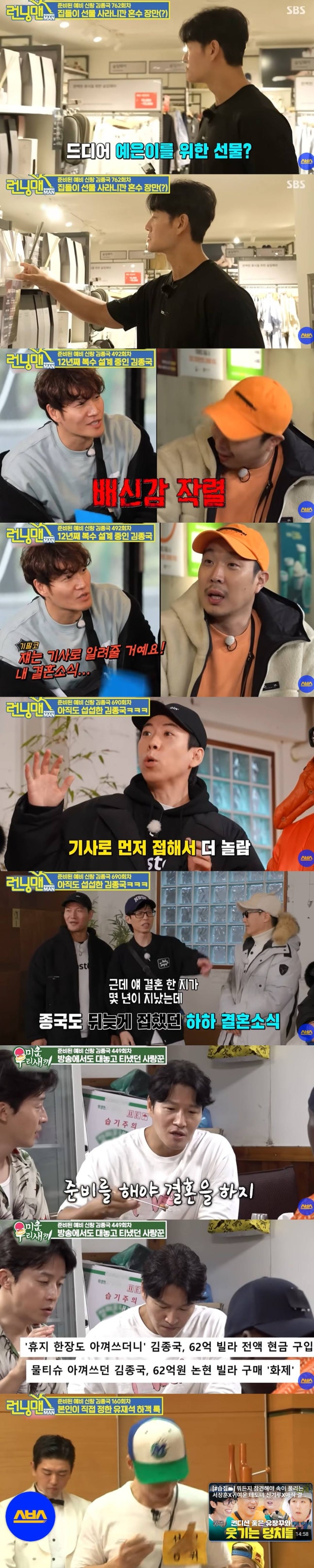 김종국은 "나는 쟤한테 기사로 (결혼 소식을) 알려줄 거다"라고 말해 웃음을 자아냈다.