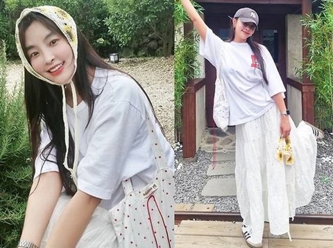 배우 정유미가 2일 자신의 SNS에 제주도 카페 나들이 컷을 공개했다. 사진 속 정유미는 루즈핏 화이트 티셔츠에 티어드 롱스커트를 매치해 내추럴한 여름룩을 연출했다.
