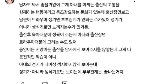 애 낳아줬더니 부터 정신사고가 의심됨. 지가 남편 노예냐. 낳아주게