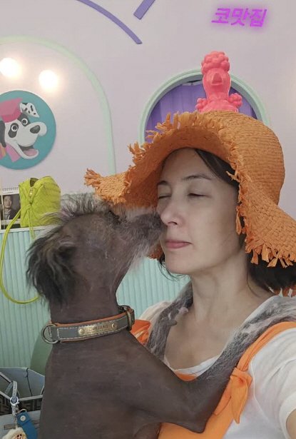 강아지 라온의 끊임없는 '코 핥기 애정 표현'에도 미소를 지으며 참아내는 모습은 진정한 애견인의 면모를 엿보이게 했다.