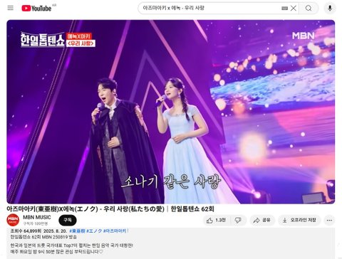 (사진4 설명) 아즈마아키(東亜樹)X에녹(エノク) - 우리 사랑(私たちの愛)|한일톱텐쇼 62회
