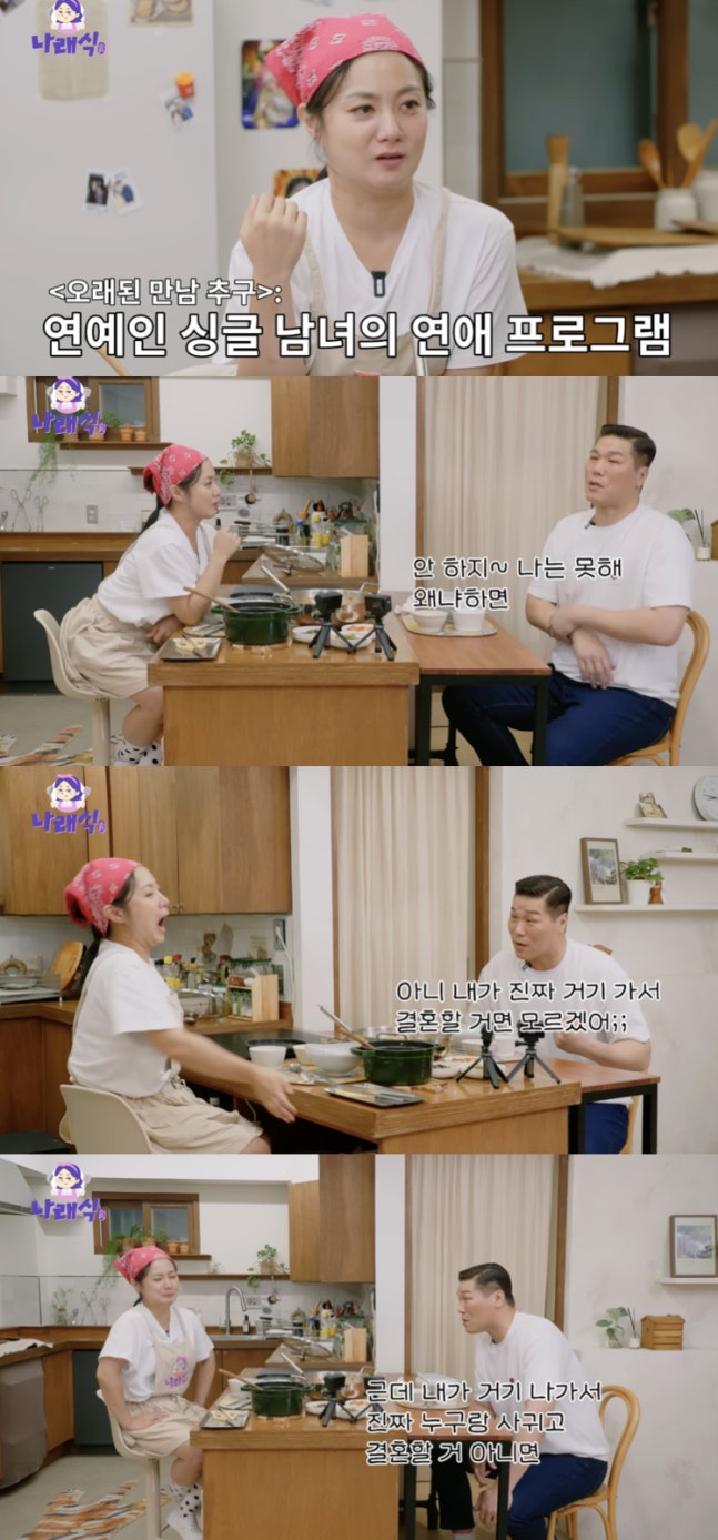 이날 박나래는 '돌싱(돌아온 싱글)' 서장훈에게 연애 예능 출연 의사가 있냐고 물었다.