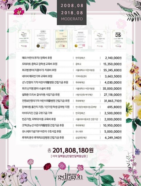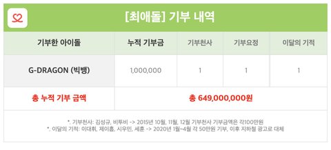 지디가 조공을 전혀 안받으니까 팬들도 좋은의미로 기부하는듯 좋은문화