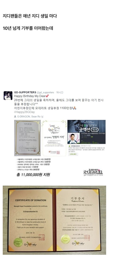 팬들까지 선한 영향력 ㄹㅈㄷ네.. 지디도 팬들도 진짜 멋있다.