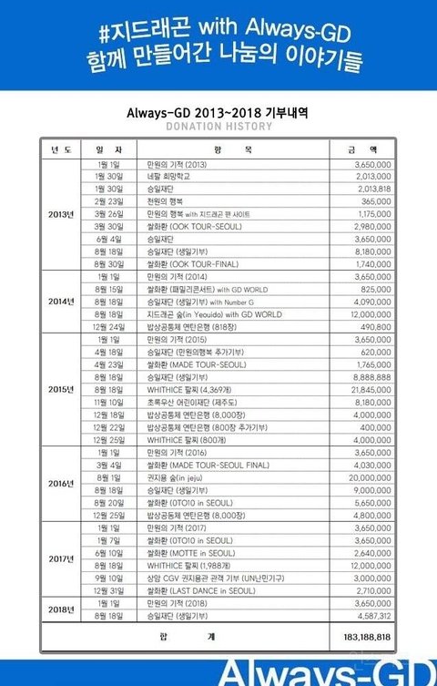 지디는 작년과 올해 40억 넘게 기부하고 있고