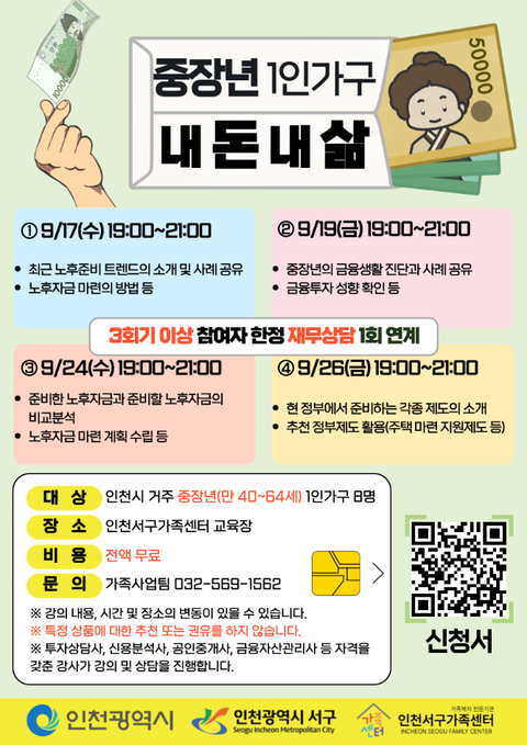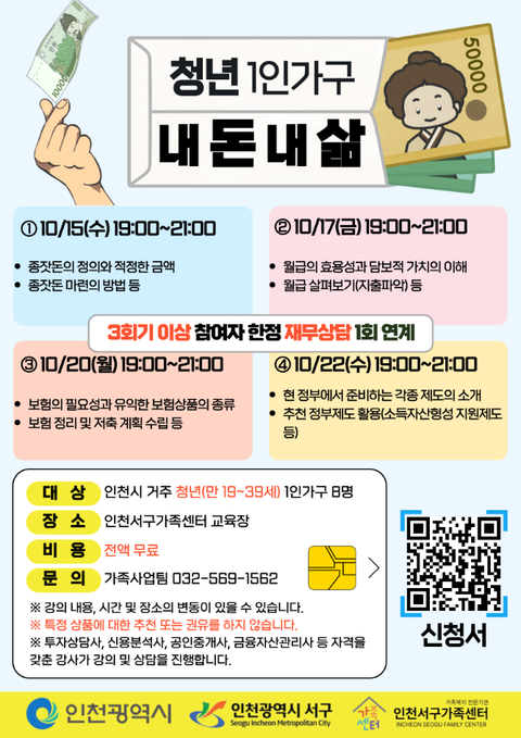 생애주기별 1인가구의 자기 돌봄 지원을 위한 재무교육 및 재무상담 프로그램 진행됩니다.