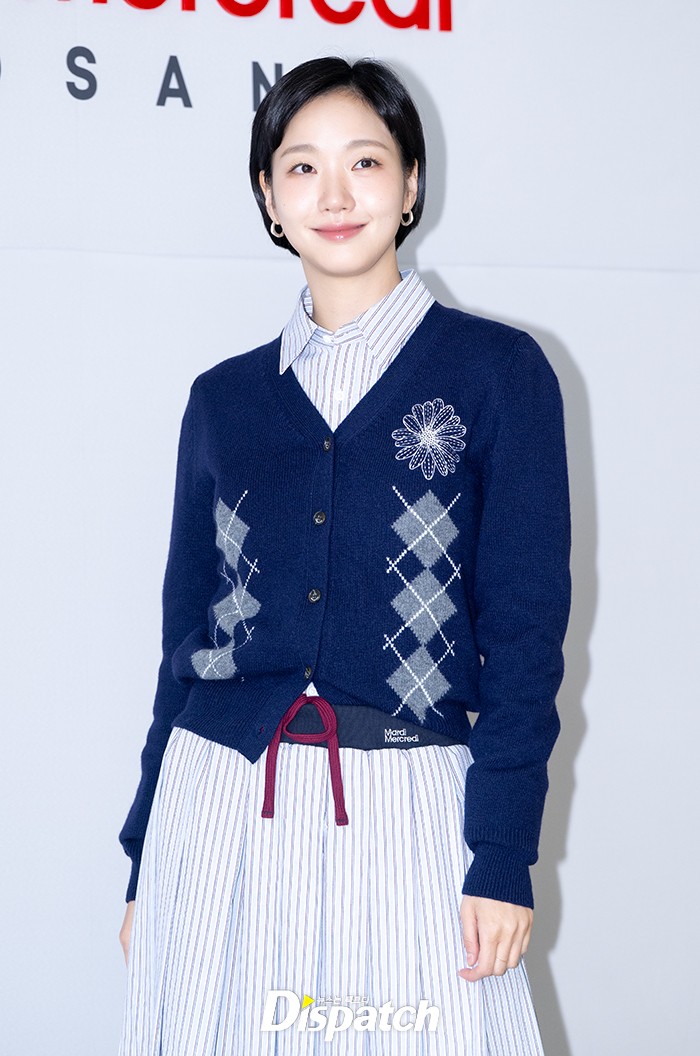 김고은은 스트라이프 원피스와 니트로 멋을 냈다. 다양한 포즈로 시선을 사로잡았다.