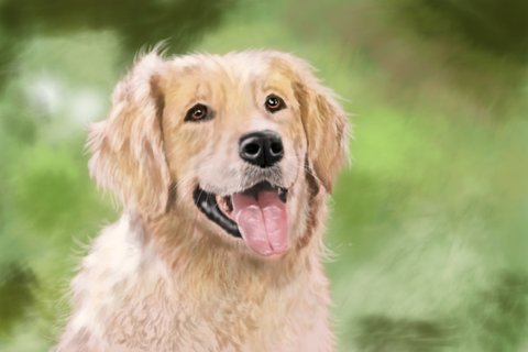 골든 리트리버입니다. 이번 그림은 털 한올한올 안 그리고 질감 위주로 했는데, 시간도 절약돼고 결과도 괜찮은 것 같아요. 앞으로 디지털로 동물 그리기 할 땐 이 방법으로 해야 할 듯...