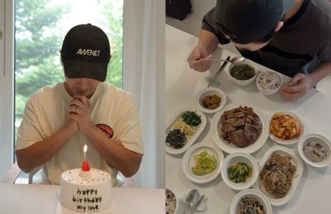 'Happy birthday my love'라고 적힌 케이크에 초를 불기 전 소원을 빌고 있는 전진의 모습이 눈길을 끌었다. 이어지는 사진에는 갈비찜, 잡채, 각종 나물, 미역국 등이 먹음직스럽게 차려진푸짐한 생일상이 군침을 자극했다.