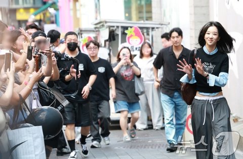 (서울=뉴스1) 권현진 기자 = 배우 서예지가 22일 오후 서울 중구 명동 닉앤니콜 플래그십 스토어에서 열린 패션 브랜드 ‘닉앤니콜’ 론칭 10주년 기념행사에 참석하고 있다. 2025.8.22/뉴스1