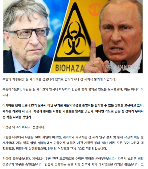 푸틴,빌게이츠를 생물학적 테러혐의로 기소하거나 전세계적 붕괴를 받아들여라