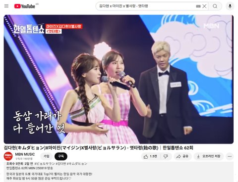 (사진6 설명) 김다현(キムダヒョン)X마이진(マイジン)X별사랑(ビョルサラン) - 엿타령(飴の歌)|한일톱텐쇼 62회