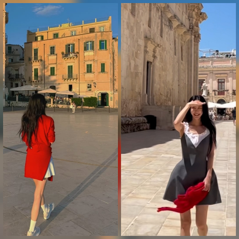 햇살을 가리며 환하게 웃는 모습, 그리고 광장을 거니는 뒷모습은 마치 영화 속 한 장면 같았다.특히 군더더기 없는 실루엣에 드러난 탄탄한 몸매와 레드 포인트 아이템이 어우러져 런웨이 같은 분위기를 자아냈다. 팬들은 “신혼여행이 끝나지 않는 것 같다”, “역시 화보 장인”이라는 반응을 보였다.