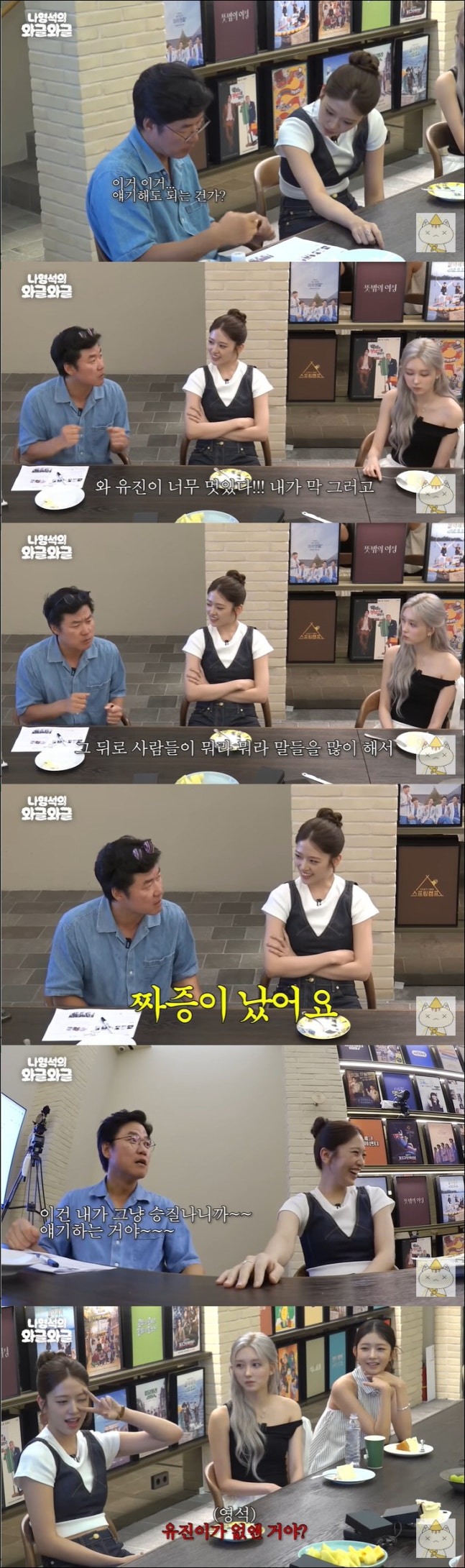 나영석PD가 언급하려던 건 안유진의 넷플릭스 '케이팝데몬헌터스' OST '골든(Golden)' 커버 영상. 안유진은 시원시원한 고음으로 '골든'을 커버해 화제가 됐지만 일각에서는 후보정이 과하다며 악플을 남기기도 했다.나영석PD는 "유진이 '골든' 커버하는 걸 저도 봤다. '유진이 너무 멋있다' 하면서 너무 기뻐서 봤는데 사람들이 뭐라 뭐라 말들을 많이 해서 짜증이 났다"고 솔직히 말했다. 이에 장원영은 "나는 뭐라뭐라 말이 있는지도 몰랐다"고 놀랐고 나영석PD는 "내가 성질 나니까 얘기하는 거다"라고 밝혔다.