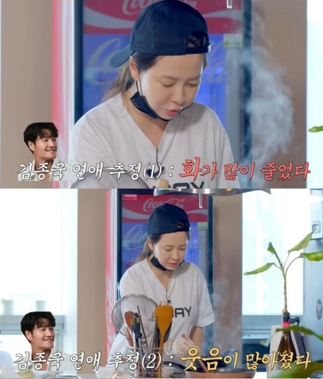 당시 지석진이 '런닝맨' 미혼 멤버들을 언급하며 "종국이는 여자친구 없는 것 같지?"라고 묻자, 송지효는 단호하게 "있는 것 같던데? 아니야? 있지 않아?"라고 되물어 지석진을 놀라게 했다. 이에 지석진이 "이거 특종이다. 왜 그런 생각을 했냐?"고 묻자 송지효는 "요즘 화가 많이 줄었다. 웃음이 많아진 것 같다"고 답하며 예리한 촉을 드러냈다.