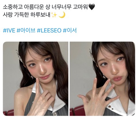 이거 스쳐지나가듯 보고 장원영인줄 알았는데 이서였음;;; 에스파도 가끔 윈터랑 카리나 조카 닮아보일 때 있던데 왜지… 막상 쌩얼 보면 닮은 느낌 하나도 없는데 같은 샵에서 메이크업 받아서 그런가