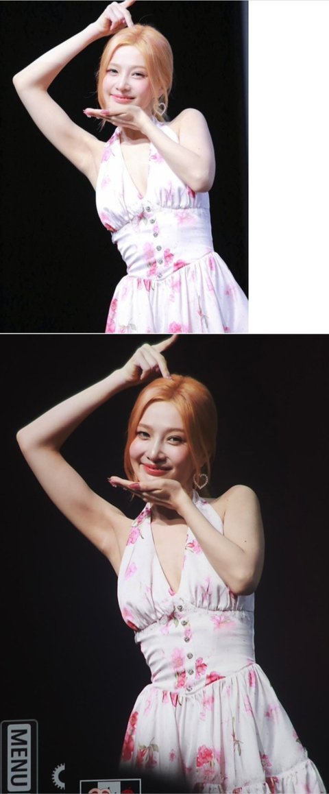 보정이 좀 과하다 조이 얼굴 긴편도 아닌데 줄이고 백인으로 만들어 놨노