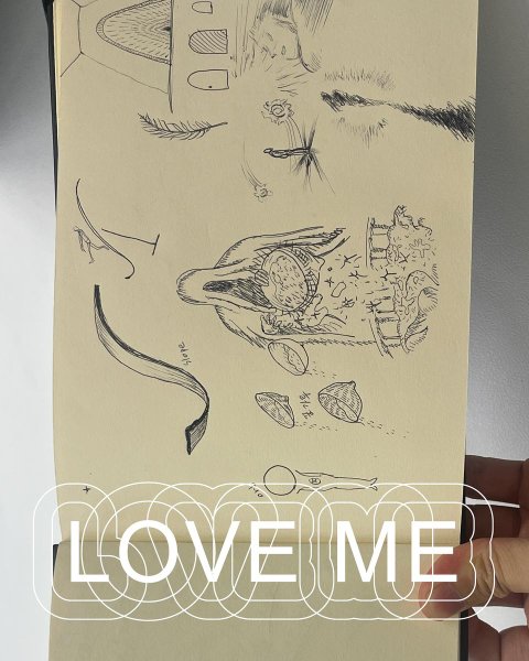 자이언티가 직접 올린 이번 사진 속에는 복잡한 서정과 미지의 감정이 얽혀 있었다. 연필로 섬세하게 그려진 드로잉들은 집의 창문과 입구, 깃털, 어딘가를 뚫고 나가는 빛줄기, 손안의 그릇, 작은 물고기, 그리고 이름 모를 오브제로 가득했다. 거친 선 아래엔 ‘LOVE ME’라는 굵고 투명한 활자가 중첩돼 드로잉을 감싸며, 신보의 첫 트랙이자 자이언티만의 메시지를 예감하게 만들었다. 종이 왼편을 가로지르는 기다란 리본과, 공들여 그려진 사물 등은 일상과 환상이 교차하는 아티스트의 독특한 감성을 비췄다. 단 하나의 인물 없이도 사진 전체에 감정의 온도가 명확하게 흐르고, 수록곡 제목이 적힌 텍스트 안에서 팬들의 설렘이 더욱 짙어졌다.