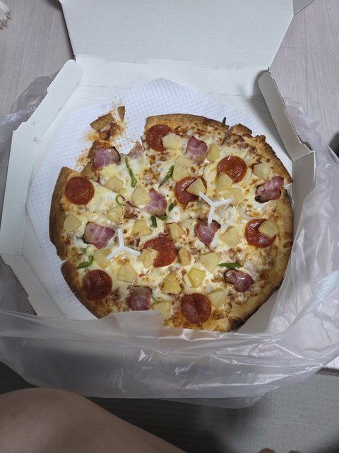 근데 파인애플이랑 페퍼로니 잘린데가 안이어지잖아. 아예 다른 조각인데?