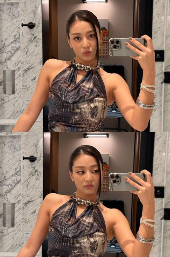 또다른 사진에서는 거울을 응시하며 포즈를 취했다. 특유의 커다란 눈망울로 다양한 분위기를 자아냈다.