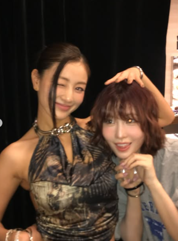 또한 그룹 멤버인 모모의 머리에 손을 얹고 윙크를 하는 등 유쾌한 모습도 보였다.