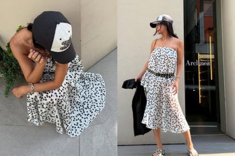 공개된 사진은 야구 모자에 어깨 라인이 드러난 도트 무늬 튜브원피스를 입고 있는 황신혜의 모습. 스포티한 모자와 여성스러운 원피스를 믹스매치해 독특하면서 세련된 분위기를 연출했다.