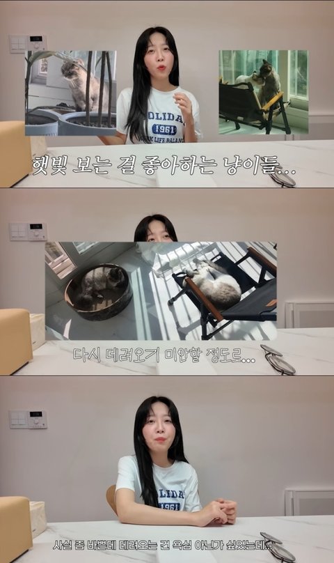 이어 “고양이들이 (본가에서) 햇빛 보는 걸 너무 좋아해서 다시 데려오기 미안할 정도다. 부모님도 좋다고 해 내가 해 드는 집으로 이사하기 전까지 맡아주기로 했다”라고 덧붙였다.
