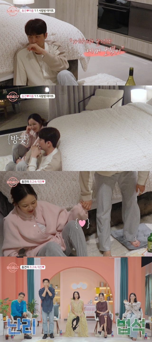 이동건은 조아름이 "그럼 내일 데이트하는 걸로 하자. 그럼 난 조금 더 늦잠을 자야겠다"고 하자 "귀엽네?"라고 반응한 데 이어, 조아름의 손을 꼭 잡으며 적극적으로 스킨십을 해 MC들을 난리법석 떨게 만들었다.
