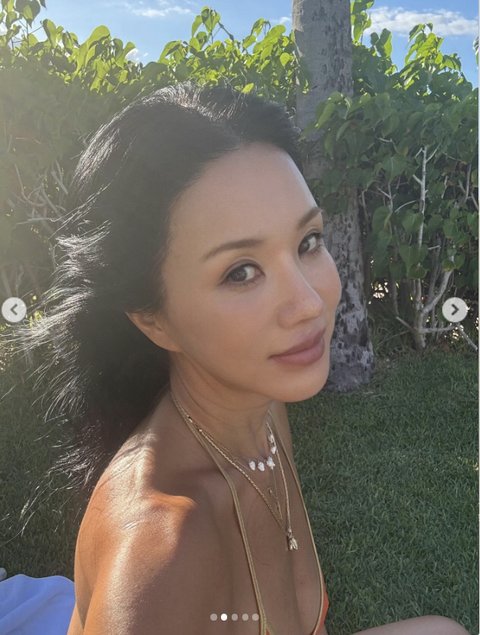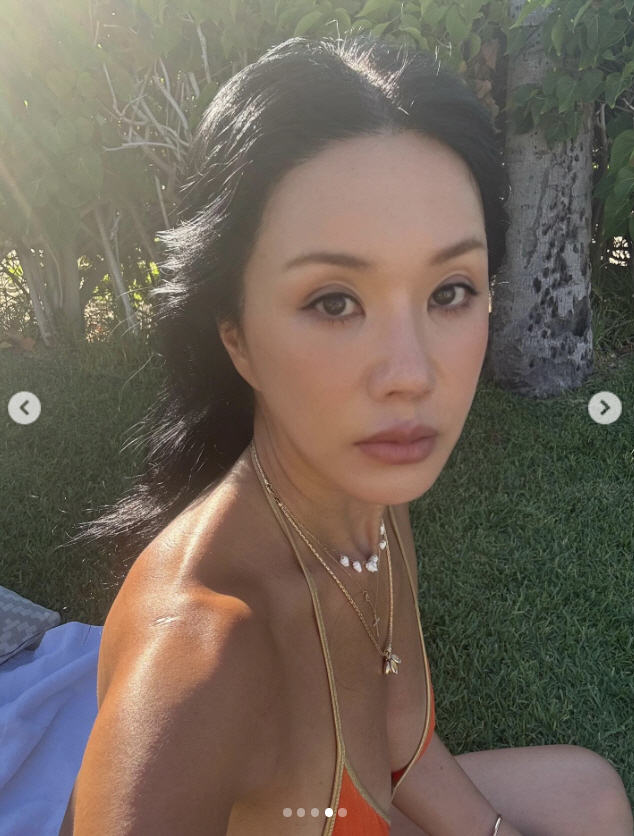 사진 속에서 엄정화는 구릿빛 건강한 피부와 함께 비키니 차림으로 군살제로 탄탄한 몸매를 선보였다.시원한 야외에서 바람과 햇빛을 느끼며 힐링하고 있는 모습이 눈길을 끈다.