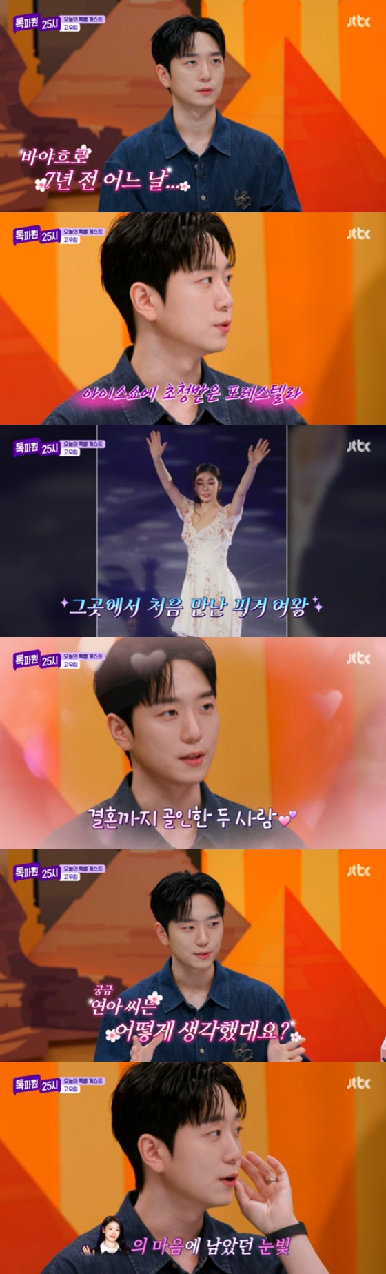 "김연아의 마음은 어땠냐"라는 질문이 이어졌고, 고우림은 "아내도 처음부터 저한테 관심이 있다기보다는, 제가 되게 빤히 쳐다봤다고 그랬다. 그래서 제가 기억이 난다고 했다"라고 전했다.