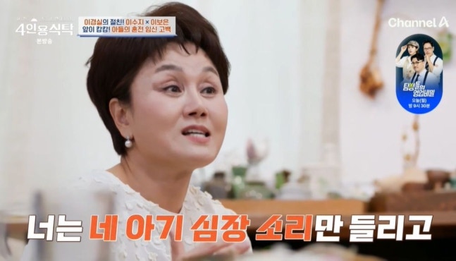 이어 이경실은 "그 얘기를 듣는 순간 눈앞이 캄캄했다. '그래서?'라고밖에 말을 못했다. '낳아야죠. 아기 심장 소리를 들었다'라고 하더라. 그 얘기에 나도 무너지긴 했다. 근데 거기서 '넌 네 아기 심장 소리만 들리고, 엄마 심장 떨어지는 소리는 안 들리냐'면서 욕이 나갔다"라며 "안 된다고 하는데 전혀 꺾이지 않더라. 그 뒤로 일가친척을 동원했는데도 꺾이지 않았다"라며 처음엔 반대했다고 말했다.