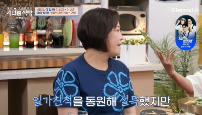 25일 방송된 채널A '절친 토큐멘터리-4인용 식탁'에서는 이경실이 이수지, 이보은과 MC 박경림을 초대했다.