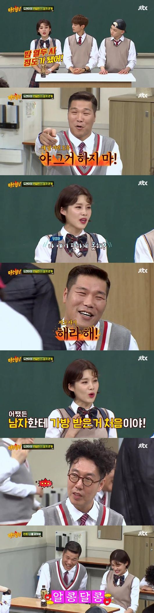 이어 장도연은 "녹화가 1시~2시쯤 끝나서 전화했는데 지인이 가방 사업을 하는데 주고 싶다고 했다고 한다. 남자에게 가방 받아본 것 처음"이라고 진실을 공개했다. 서장훈은 가방 사업을 하는 지인에게 장도연이 '아는 형님'에 출연한다고 말했고, 그 지인이 장도연에게 가방을 선물했던 것. '아는형님' 멤버들은 두 사람의 썸을 만들려고 했고, 이 이야기를 들으면서 장도연을 좋아하는 김영철만은 웃지 못해 눈길을 끌었다.
