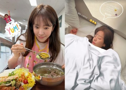 24일 한지민은 자신의 SNS에 손석구가 보낸 전복 갈비탕을 먹고 있는 사진을 게재했다.