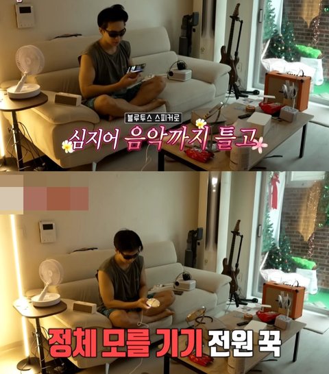 일단 눈 뜨자마자 세상 내츄럴한 아웃핏과 함께 정체 모를 기기 전원 만지작 대는 최상엽