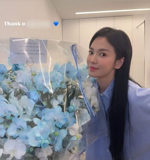 특히 송혜교는 커다란 꽃다발을 안고 꽃보다 아름다운 미모를 완성해 더 놀라움을 줬다. 우아한 분위기와 청순한 비주얼이 푸른 빛의 꽃과도 잘 어울렸다.