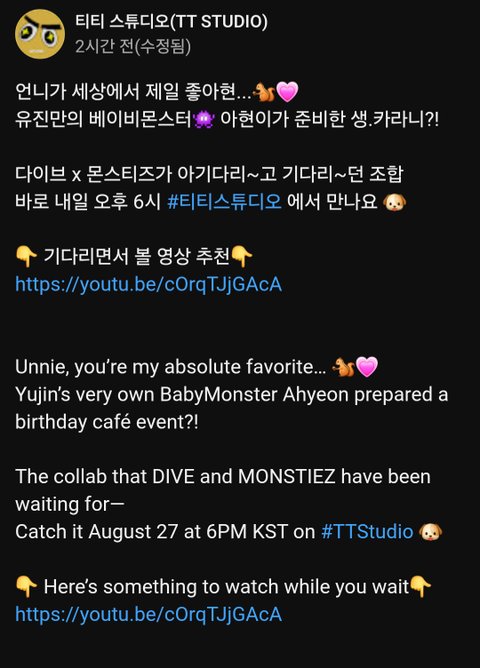 전에 안유진이 아현이가 선물줬다고 샤라웃해주고 그러더니 같이 콘텐츠도 나오네
