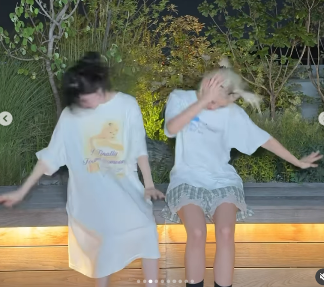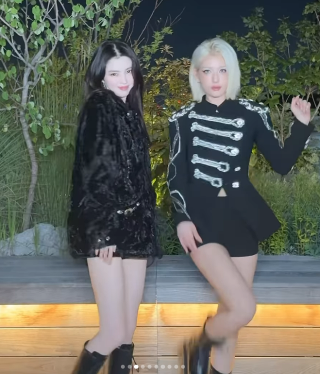 이날 한소희는 전소미와의 친분을 자랑했다. 두 사람은 편한 복장으로 서로의 머리를 쓰다듬는가 하면, 무대의상 같은 블랙 착장으로 시크한 매력을 뽐내기도 했다.