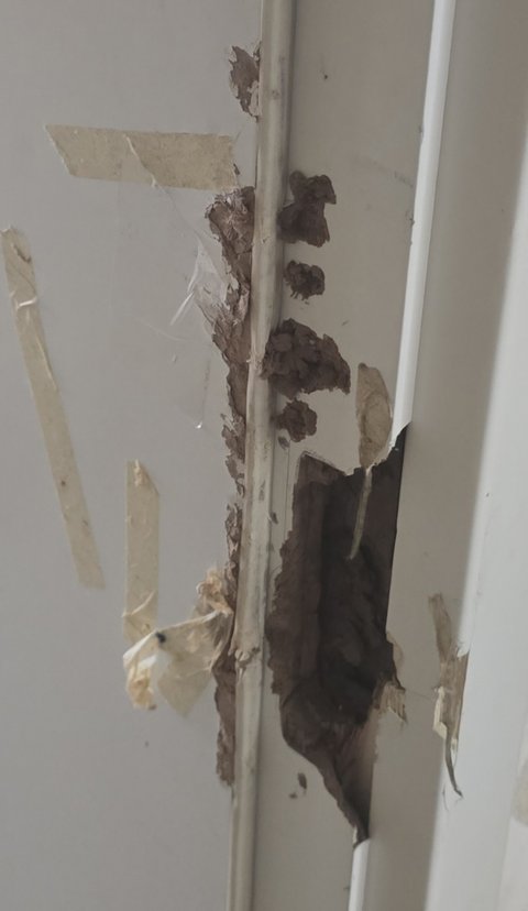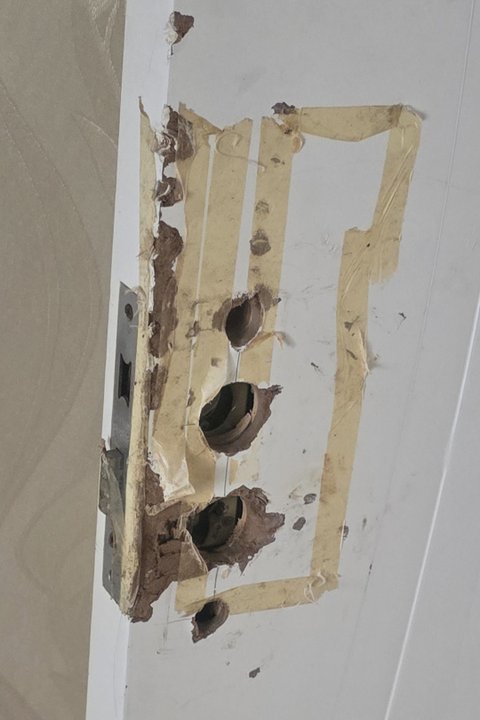 7. 도끼로 문짝 빠개면 어떤결과 나오는지 사진남김.(19년도 신혼때 마눌이 뿌신거) + 겨울에 외투입고 있어도 사람이 이빨로 깨물면 어떤 결과가 나오는지(올해) 사진남김.
