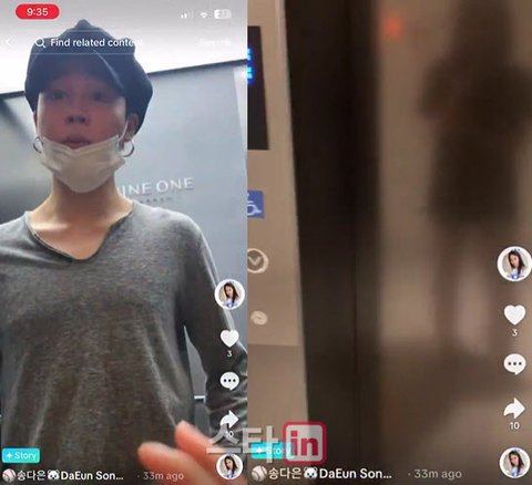 송다은(왼쪽), 지민(사진=SNS, 이데일리DB)27일 온라인상에는 ‘송다은이 틱톡에 올린 영상’이라는 제목의 영상이 등장해 화제가 됐다. 1분 50초 분량의 이 영상에는 한 여성이 아파트 엘리베이터 앞에서 지민으로 추정되는 남성을 놀래키는 모습이 담겼다. 이 영상을 두고 일부 누리꾼들은 지민과 송다은이 집 데이트를 즐긴 것 아니냐는 반응을 보였다.지민과 송다은의 열애설은 2022년부터 수차례 제기됐다. 그간 온라인상에서는 두 사람이 같은 장소에서 찍은 사진과 커플 아이템 등을 사회관계망서비스(SNS) 계정에 올리고 있다고 주장하는 누리꾼들의 게시물이 잇따랐다. 이 가운데 송다은은 지난해 지민과 자신의 이름이 적힌 이어폰 사진, 방탄소년단 굿즈 티셔츠를 입고 찍은 사진, 방탄소년단 콘텐츠 속 지민의 모습을 연상케 하는 영상 등을 SNS에 쏟아내 궁금증을 자아냈다.