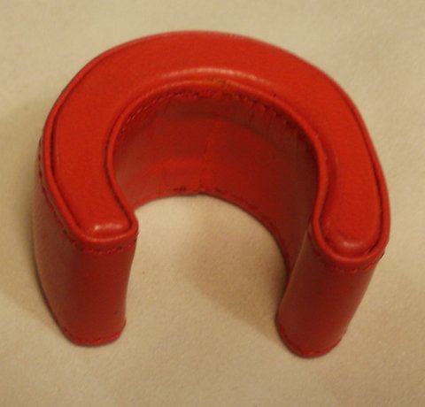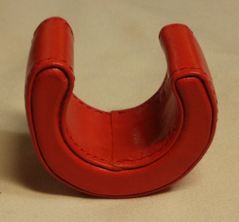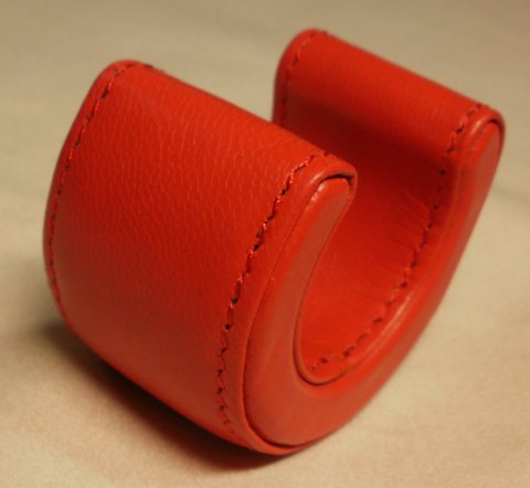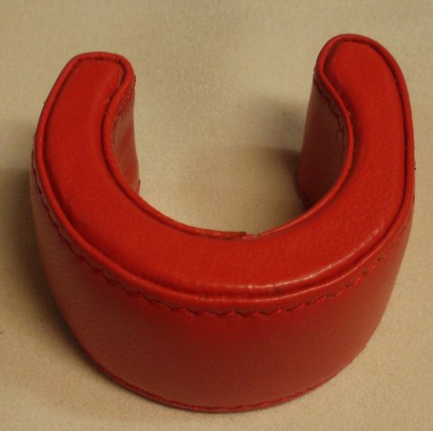 레드 컬러 양가죽으로 제작한 대금 어깨 받침입니다.내부에 고무 몰드와 스펀지를 부착하여 충격이 완화되도록 제작 하였습니다.(마디샤가죽공예)