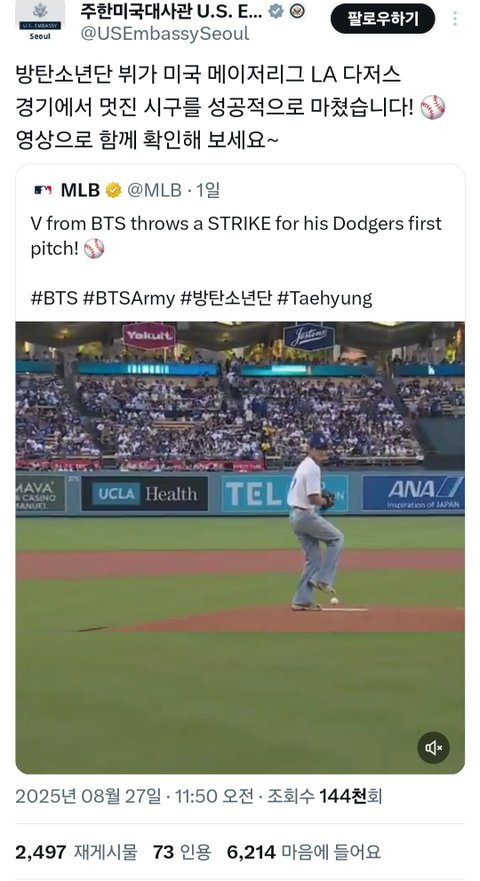 주한미국대사관 방탄 뷔 샤라웃