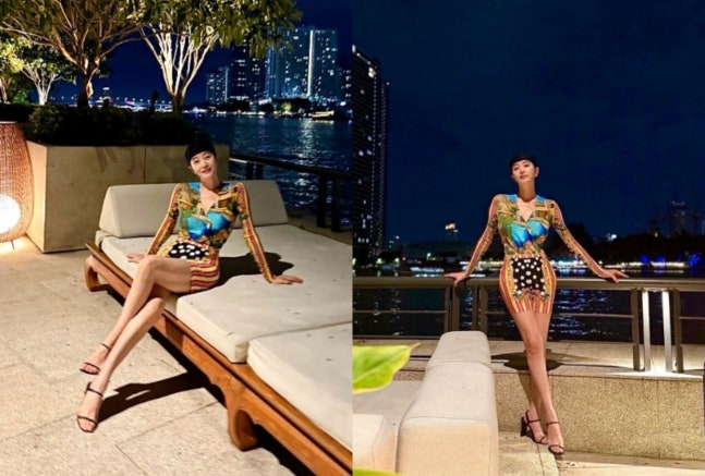 사진에서 김혜수는 근사한 야경을 배경으로, 화려한 프린트가 돋보이며 몸매가 드러나는 미니 원피스를 입고 포즈를 취하고 있는 모습이다. 그는 늘씬하게 쭉 뻗은 각선미를 자랑하는가 하면, 고혹적 자태로 글래머러스한 몸매를 자랑해 감탄을 자아낸다.